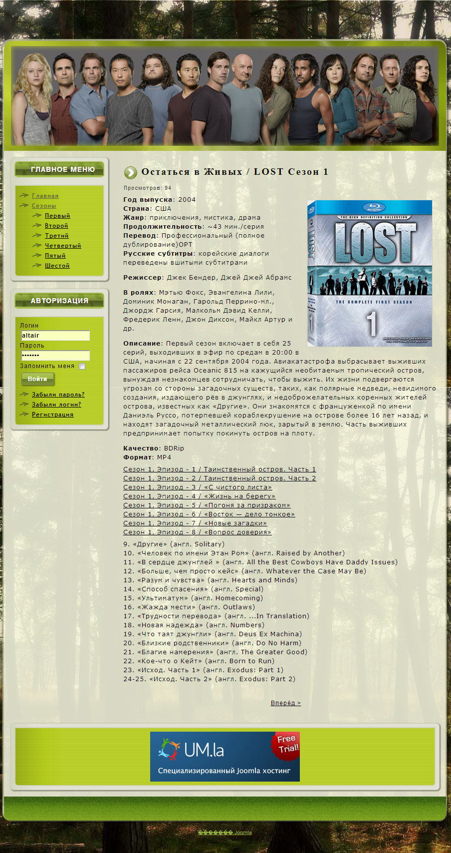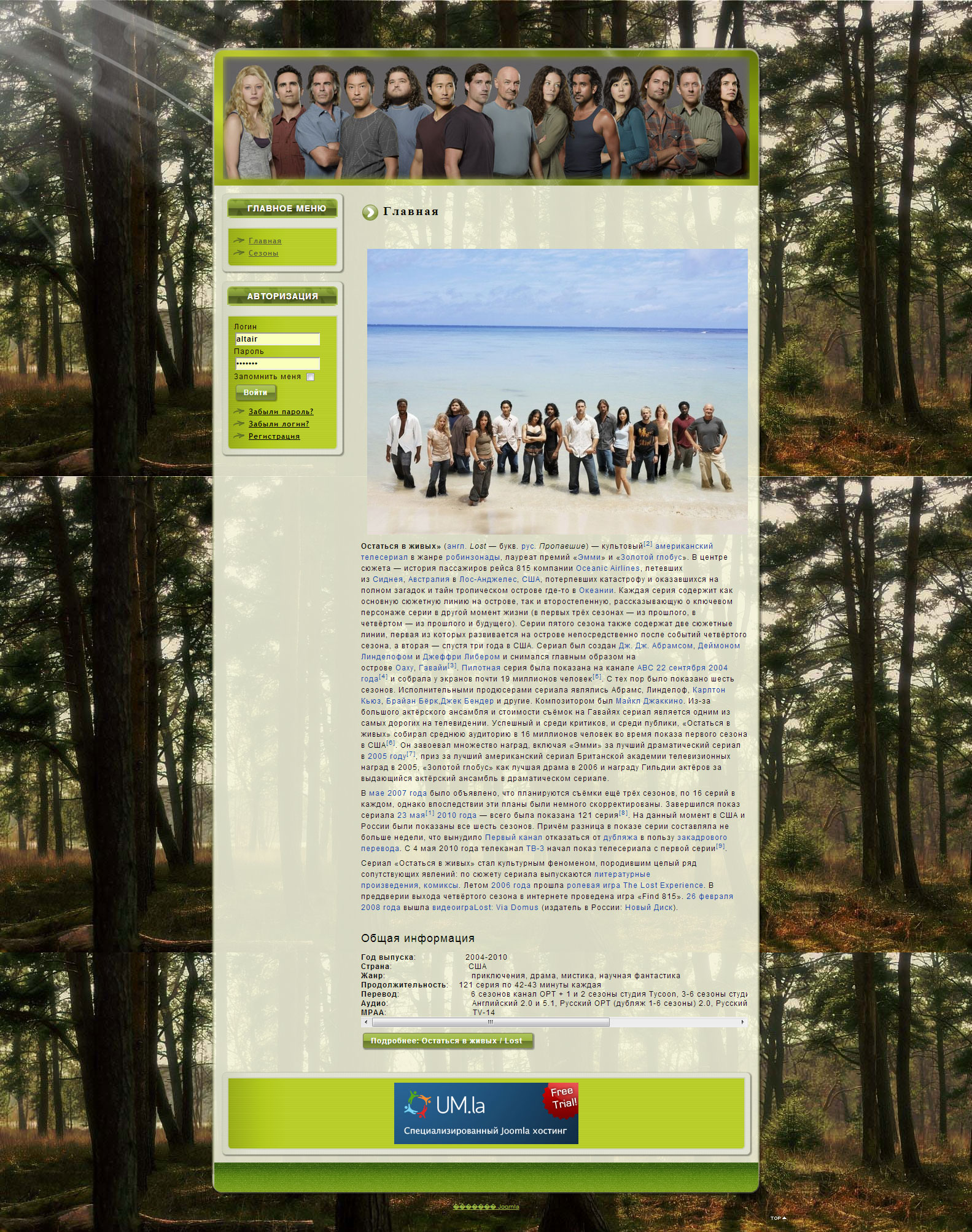 Fan site of Lost series (for portfolio) Difficulty - easy Terms - unlimited Implemented: - Ability to watch videos - Ability to view photos - Articles - Series catalog Year: 2011 Time spent: 5 days Price: --//--