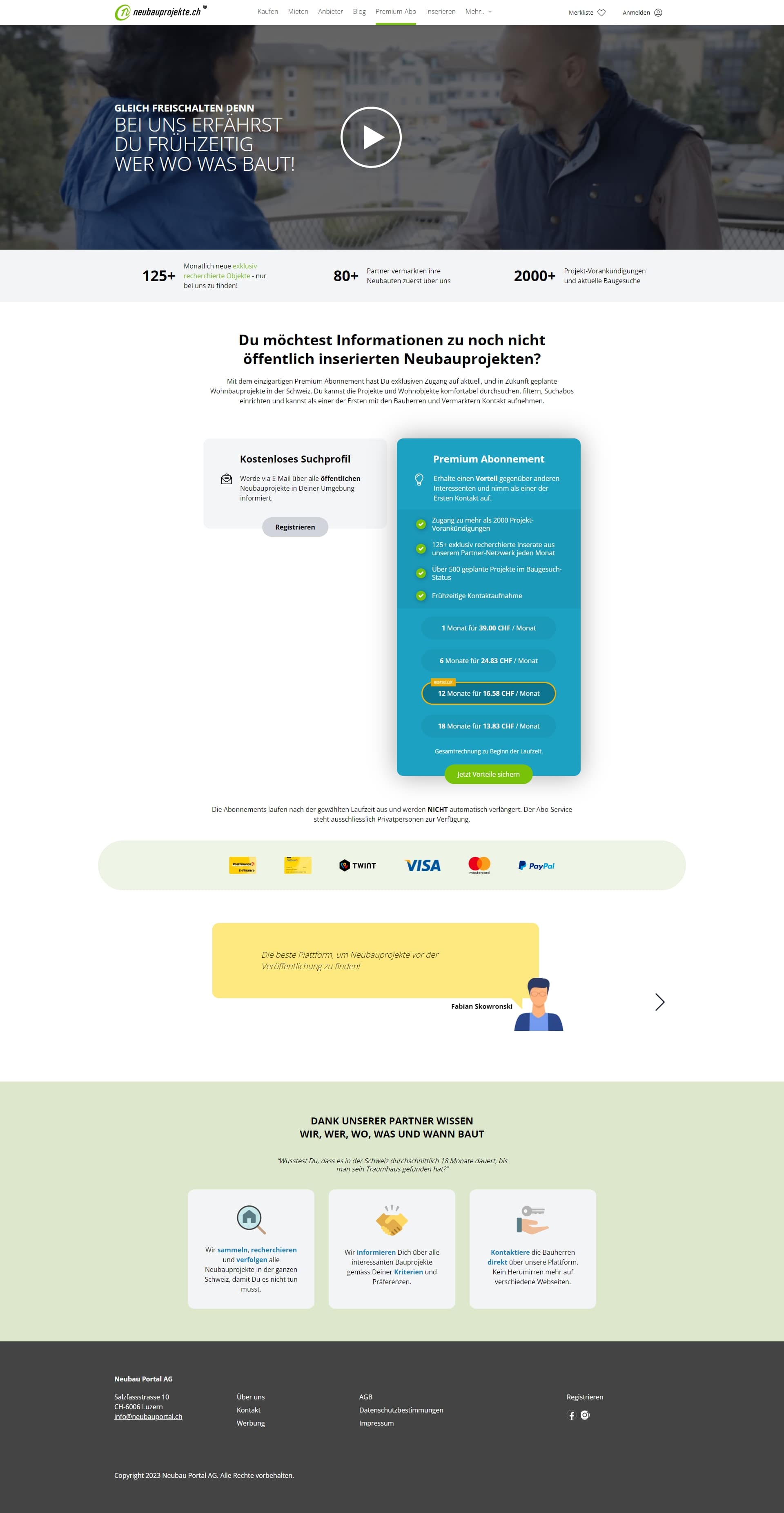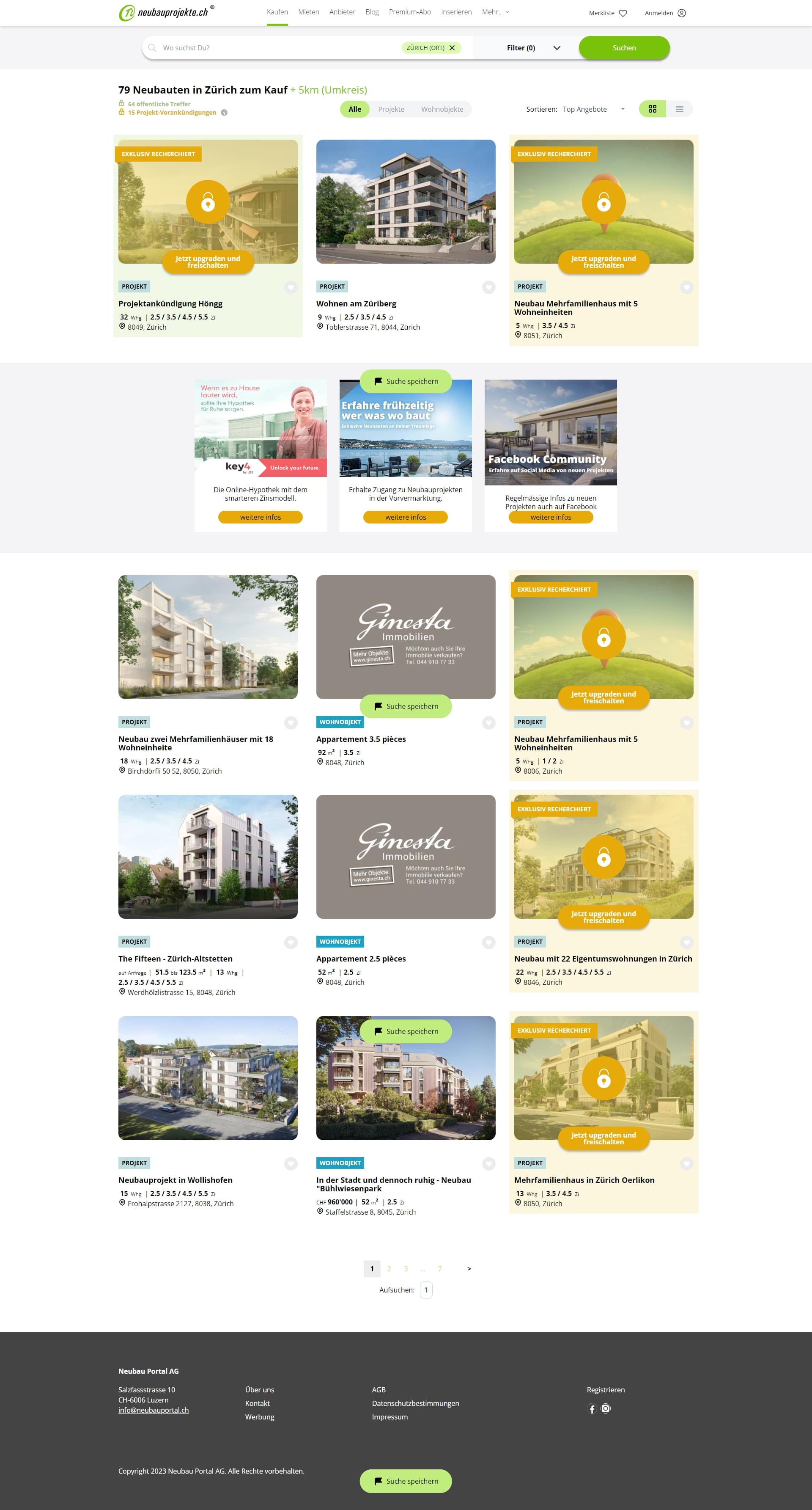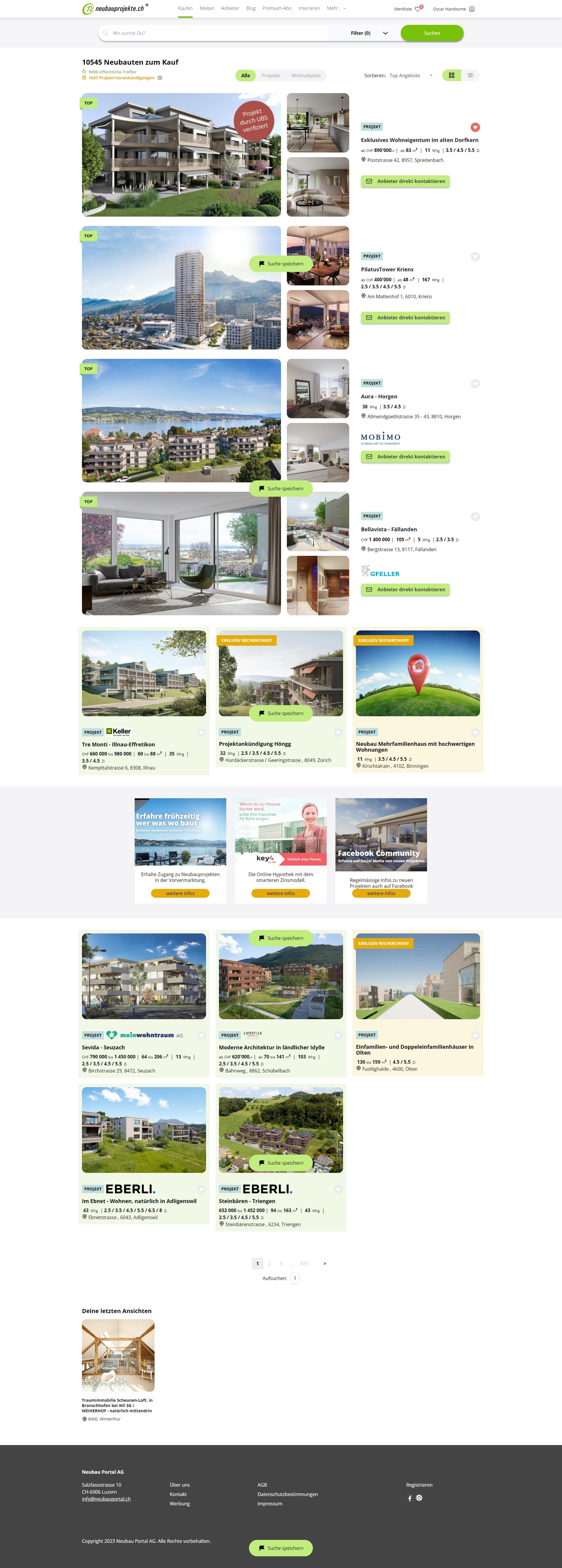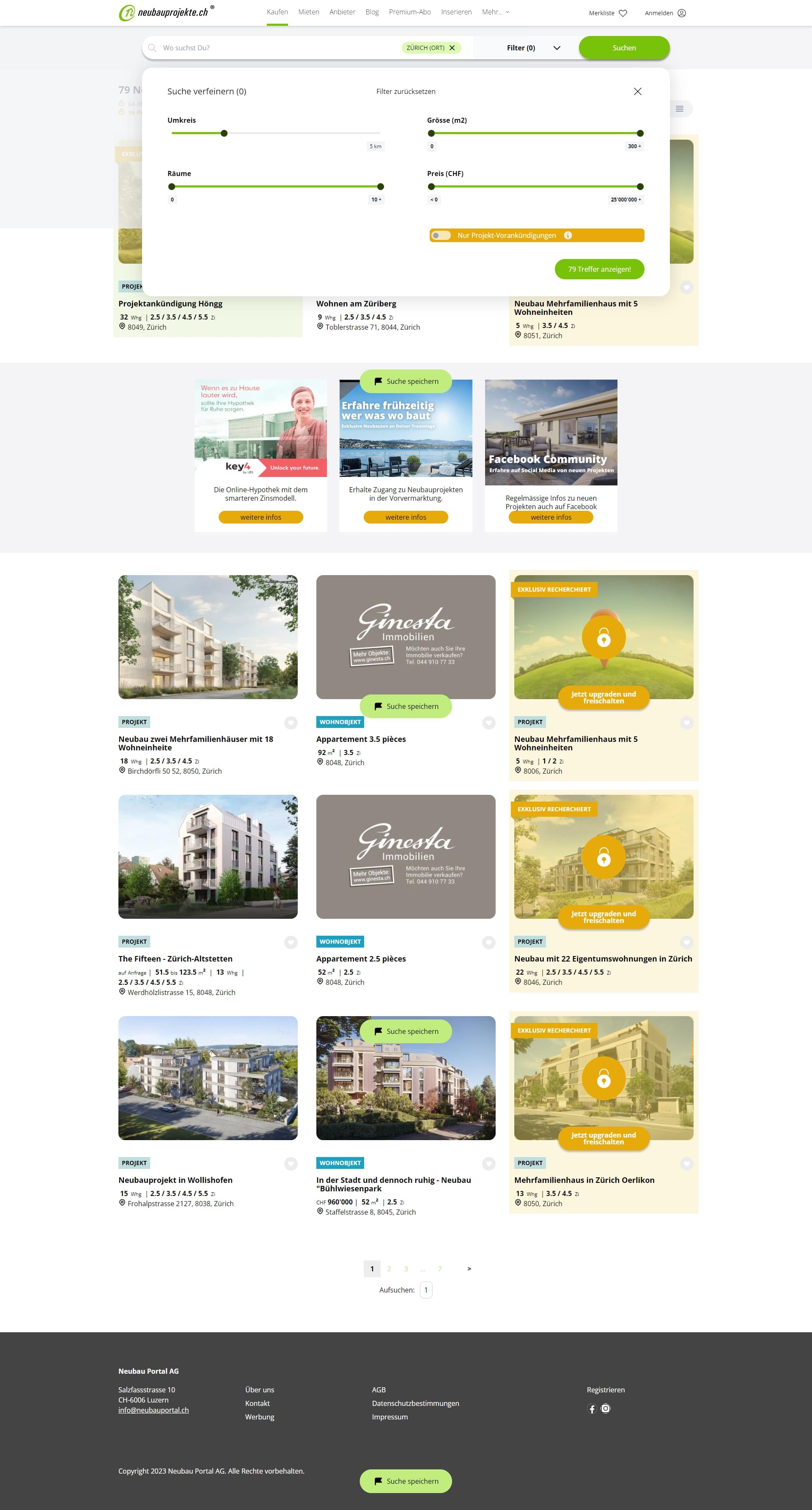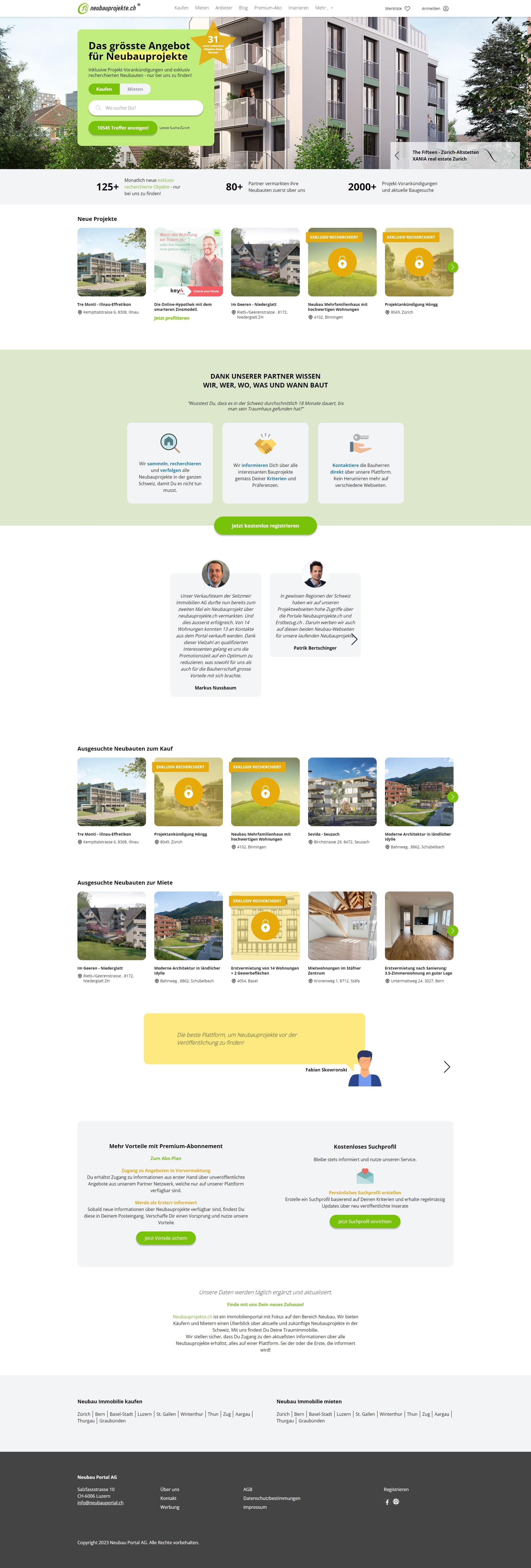 Target: implement a new design and core functionality for searching estates in Swissland. Redo Payment process. Apply changes for SEO to not lose previous traffic.